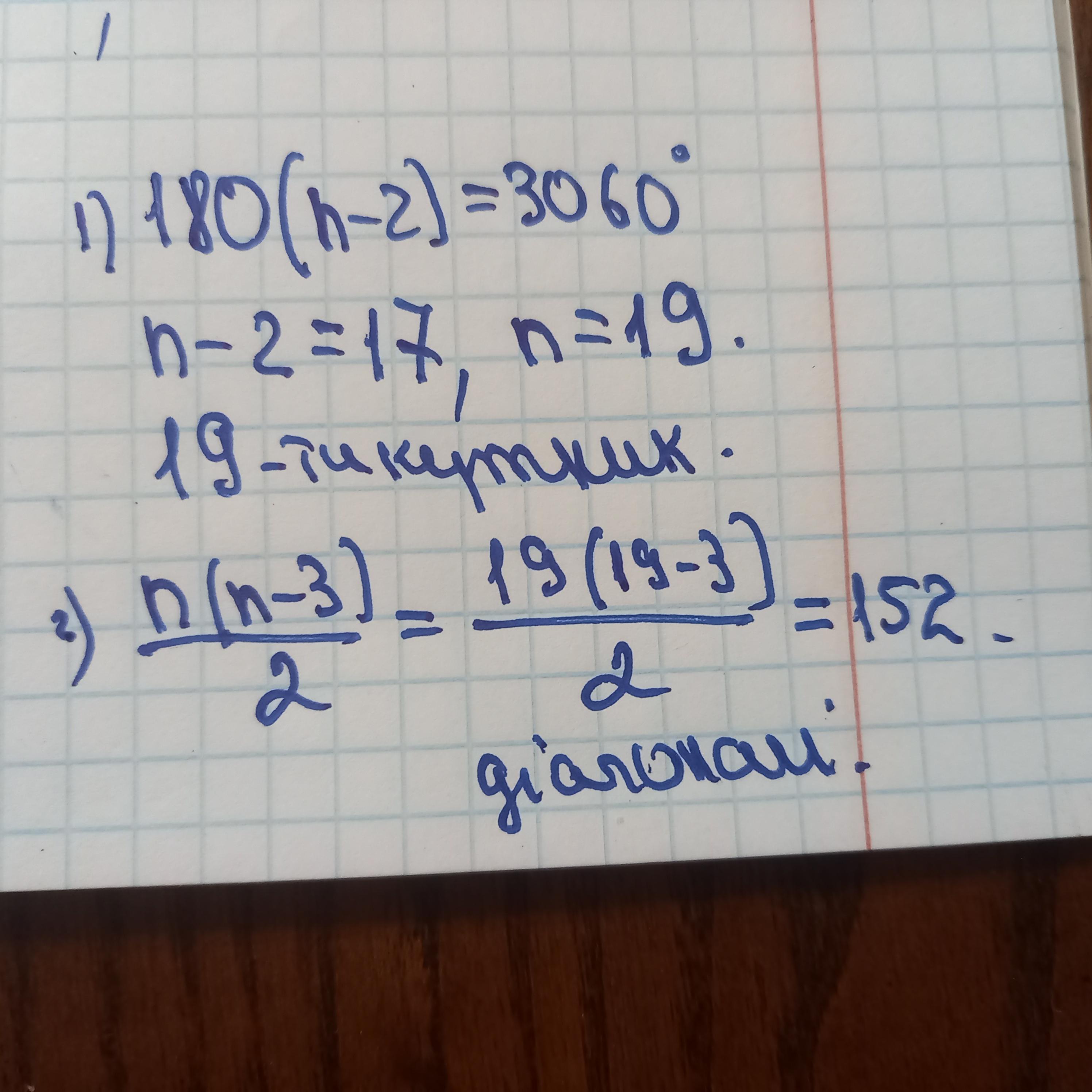 Сума кутів опуклого многокутника дорівнює 3060º, знайдiть кiлькiсть його сторiн та кількість діагоналей.