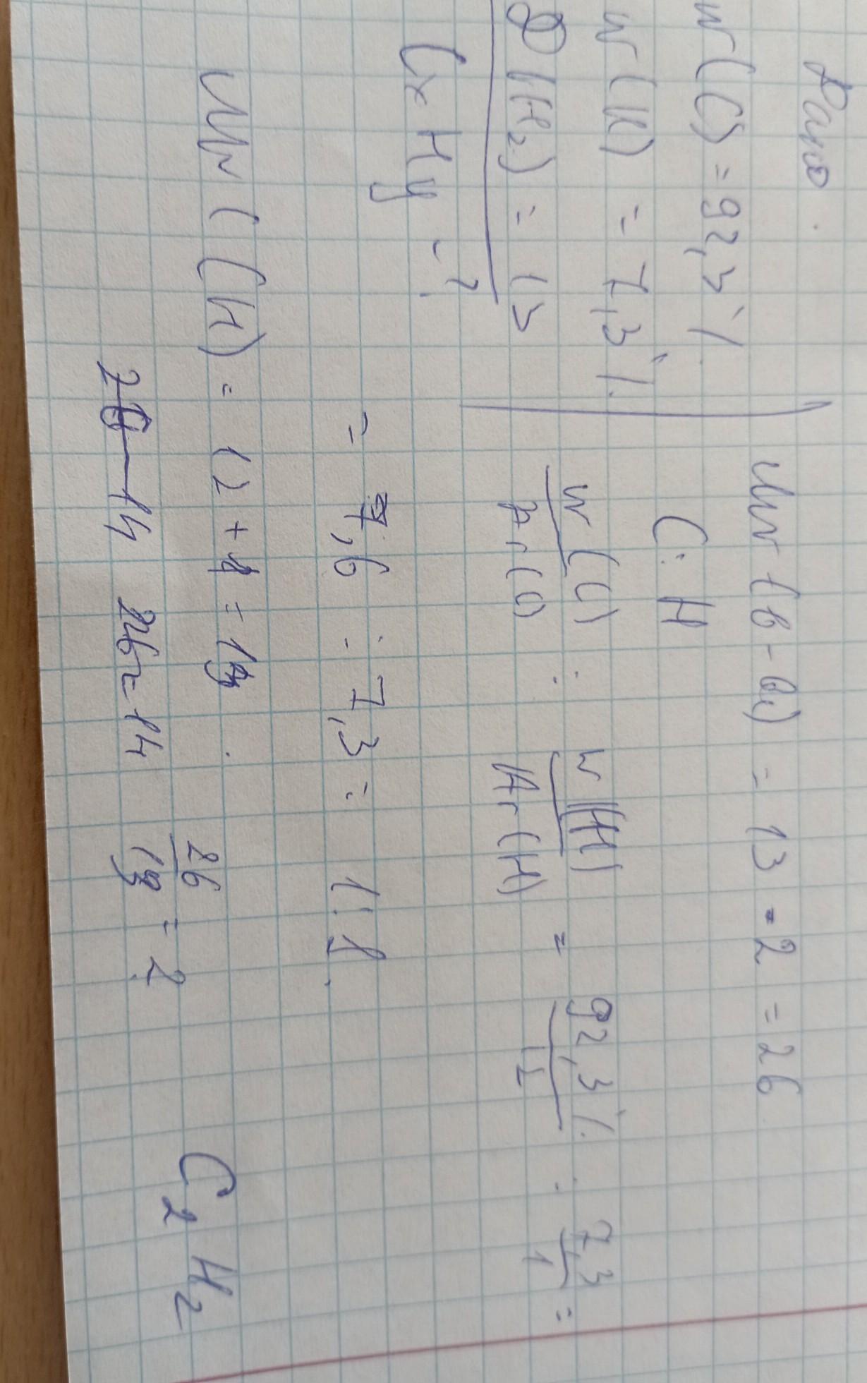 4. Найдите молекулярную формулу предельного углеводорода: Выведите формулу вещества, содержащего 92,3% углерода и 7,3% водорода. Относительная плотность паров этого вещества по водороду равна 13. (46) СРОЧНО