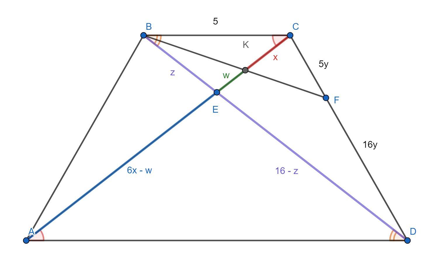 Обозначим AK = 6x , а EK = w ⇒ AE = 6x -w , также пусть BE = z ⇒