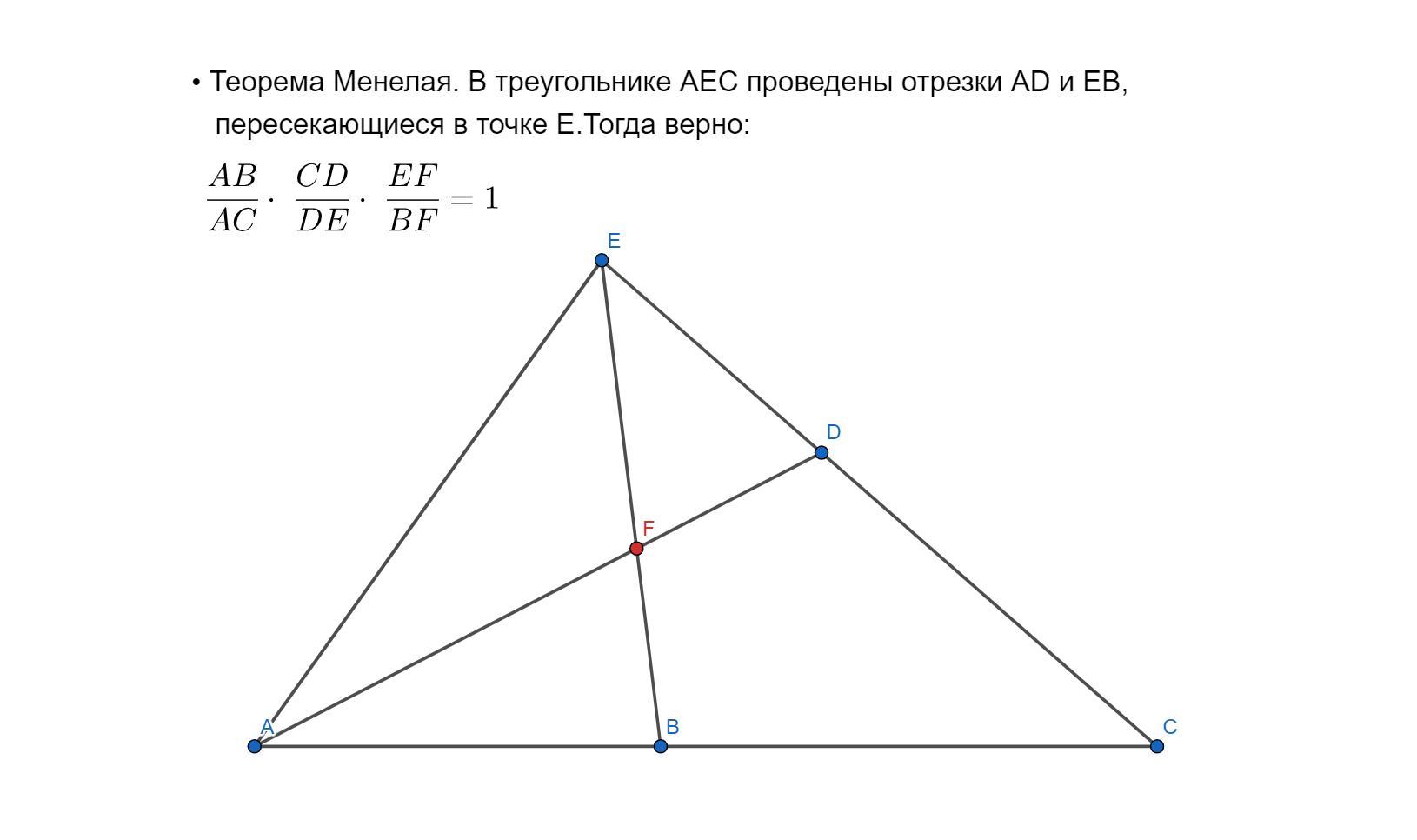 Теперь на этом же Δ-ке , применяем теорему Менелая , начиная со стороны BE
