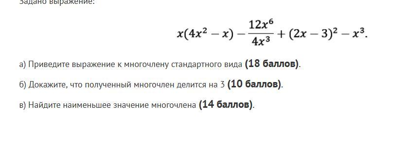 a) Приведите выражение к многочлену стандартного вида (18 баллов).