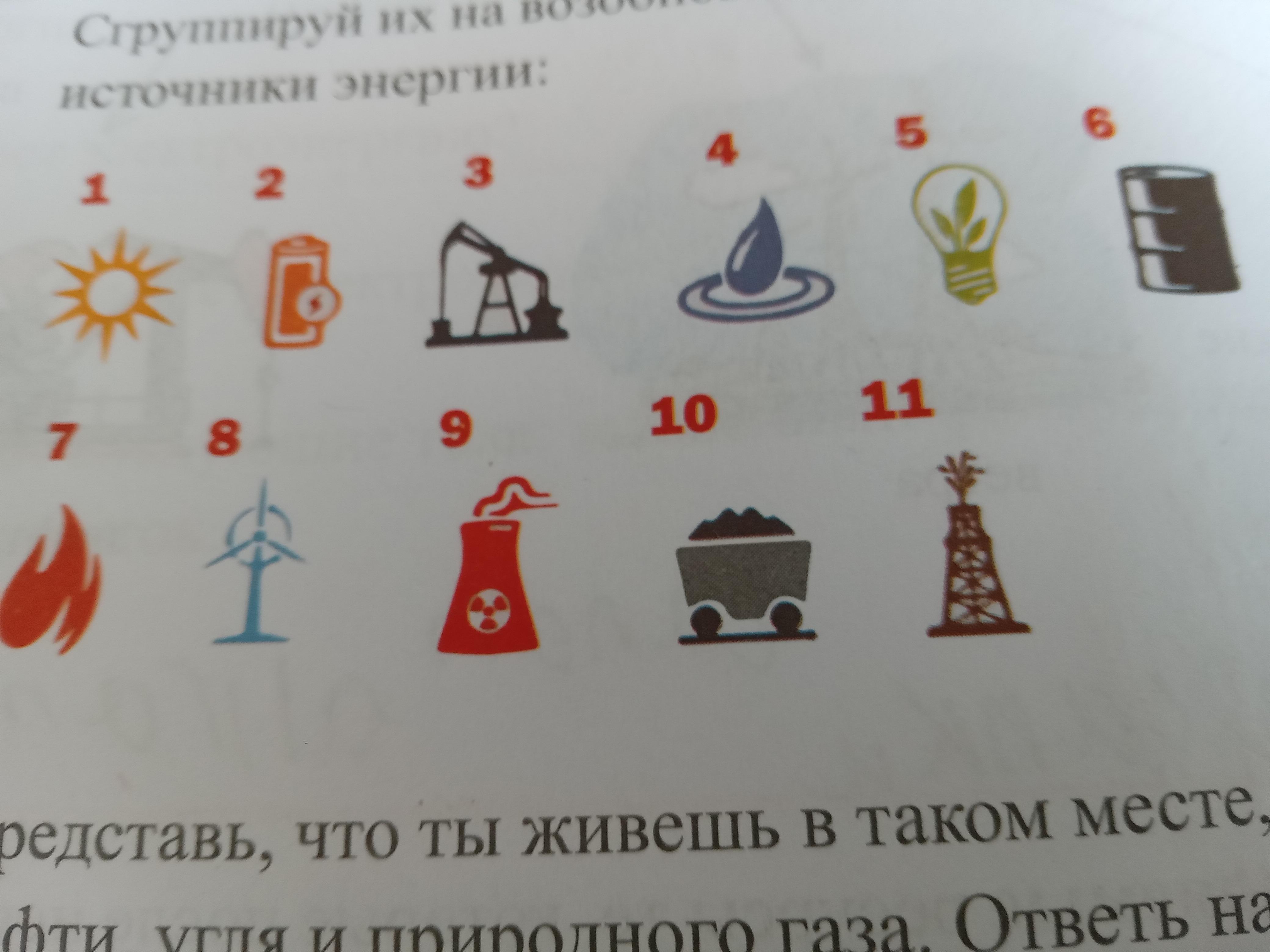 На рисунках представлены источники энергии. Сгруппируй их на возобновляемые и невозобноляемые источники энергии: