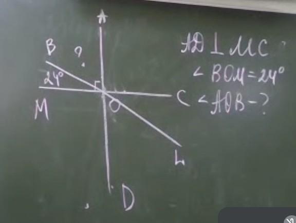 Так как угол МОА= 90°, значит угол ВОА= угол МОА- угол МОВ= 90°-24°=66°