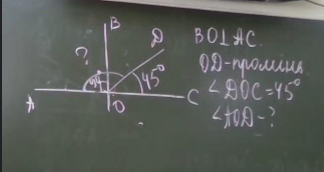 угол BOD=угол AOC- угол AOB- угол DOC=180°-90°-45°=45°