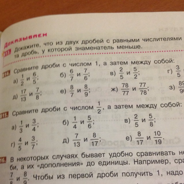 1/3 и 1/2. приводи к общему знаменателю 6. 2/6 < 3/6. 1/3 и 3/4 . общий знаменатель 12. 4/12 < 9/12. 3/4 и 1/2 общий знаменатель 4. 3/4 > 2/4.