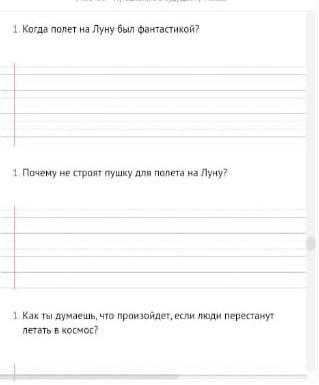 1. Когда полет на Луну был фантастикой? 1. Почему не строят пушку для полета на Луну? 1. Как ты думаешь, что произойдет, если люди перестанут летать в космос? СРОЧНО