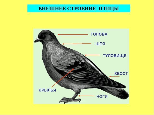 Опишите форму тела птицы и укажите, из каких отделов оно состоит. По каким признакам можно отличить птицу от других позвоночных животных?