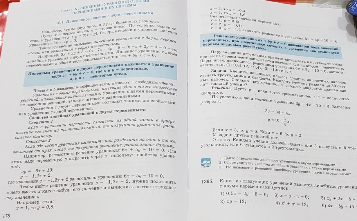 Линейным уравнением с двумя переменными называется уравнение вида аx + by + с = 0, где х и у - переменные, a, b и с некоторые числа