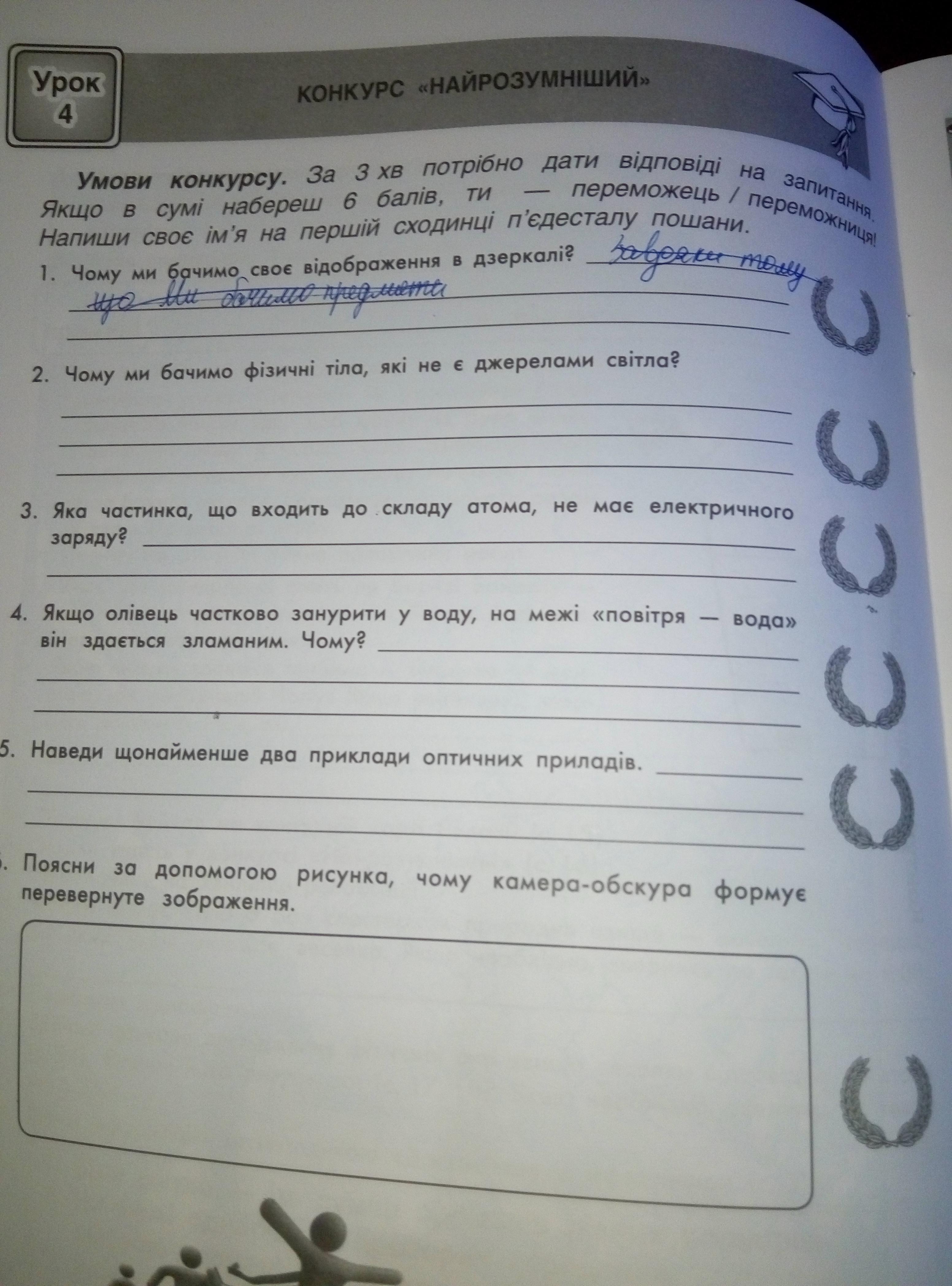 1) Ми бачимо предмети завдяки тому, що вони відбивають світло і ці відбиті промені потрапляють нам в очі.