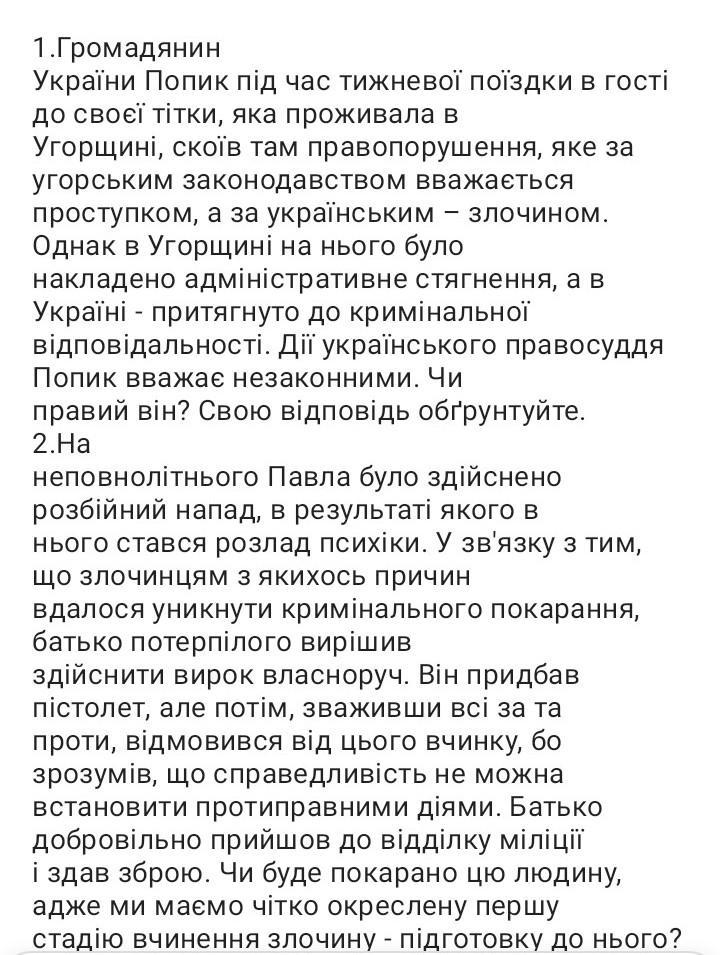 1. недопустимо привлечение к ответственности за одно правонарушение/преступление дважды (ст.2 УКУ)