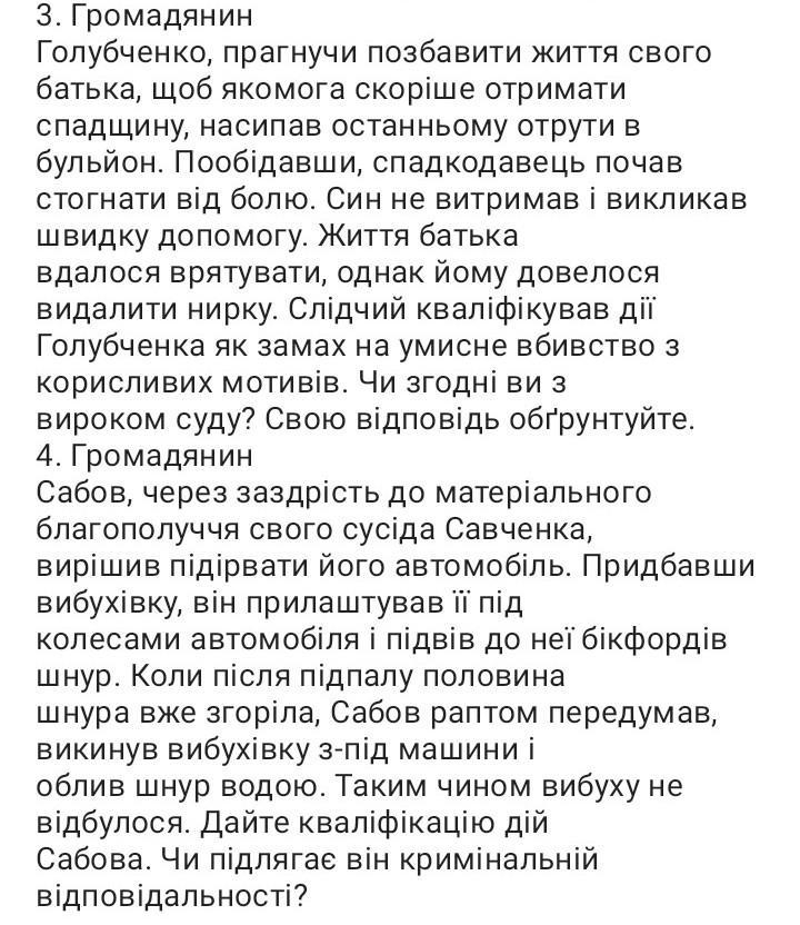 Обе задачи на одно постановление. ППВСУ «Про судову практику в справах про злочини проти життя та здоров’я особи» від 7 лютого 2003 р. № 2 в котором говорится о том, что лицо добровольно отказавшееся от кбийства либо причинения вреда потерпевшего, привлекается к ответственности, только если в ее фактически совершенных действиях есть признаки иного преступления.