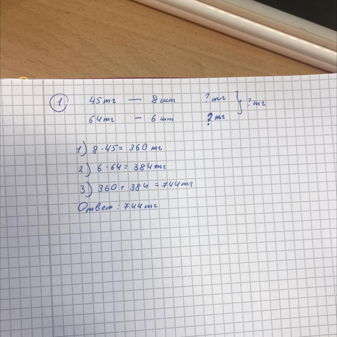Задача: Маша купила 8 яблок по 45 тг, а Саша купил 6 груш по 64 тг. Сколько заплатили Маша и Саша вместе? Ответ на фотографиии