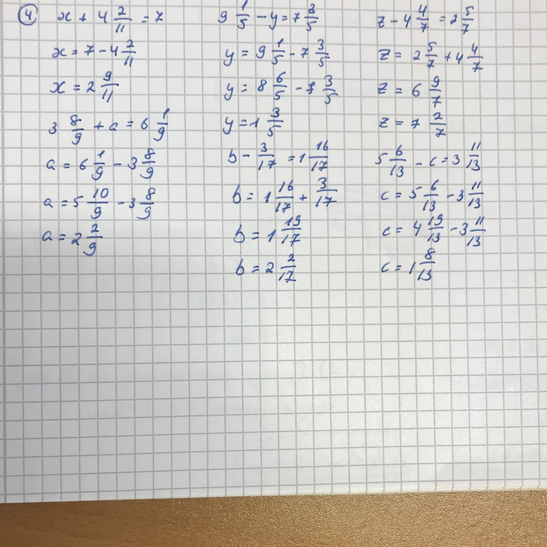 х + 4 2/11 = 7; х=7 - 4 2/11; х=6 11/11 - 4 2/11; х=2 9/11