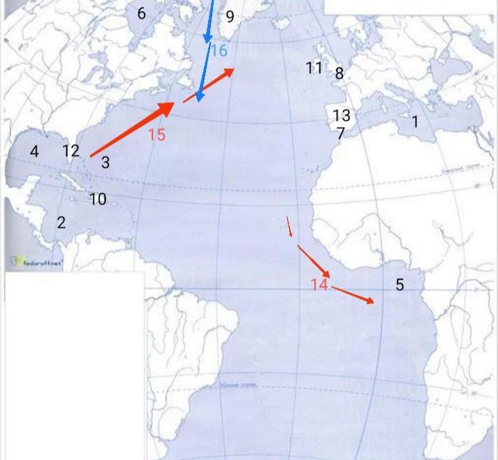 Практична робота №12. Позначення на контурній карті географічних об'єктів та течій Атлантичного океану. ПОЗНАЧИТИ НА КОНТУРНІЙ КАРТІ МОРЯ,ЗАТОКИ,ПРОТОКИ,ОСТРОВИ,ПІВОСТРОВИ,ТЕЧІЇ.