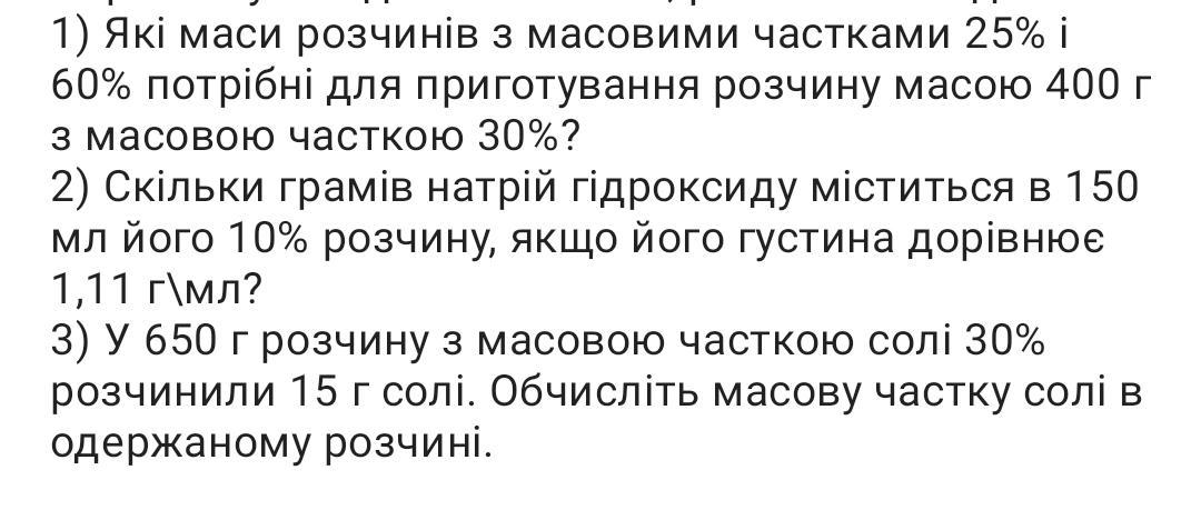 Розв'яжіть 3 задачі (треба щоб саме було розв'язання, а не тільки відповідь)