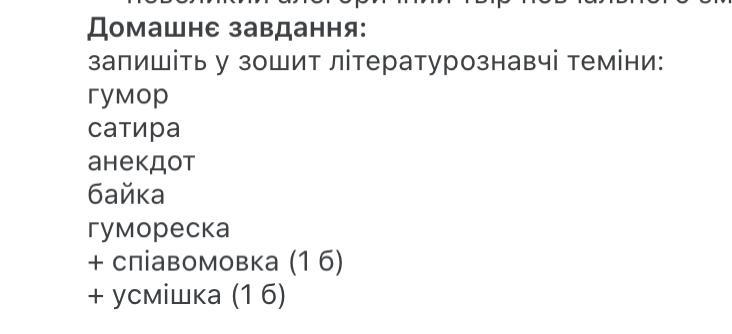 Гумор - доброзичливий сміх, спрямований на викриття недоладних явищ, кумедних риз переважно позитивних персонажів.