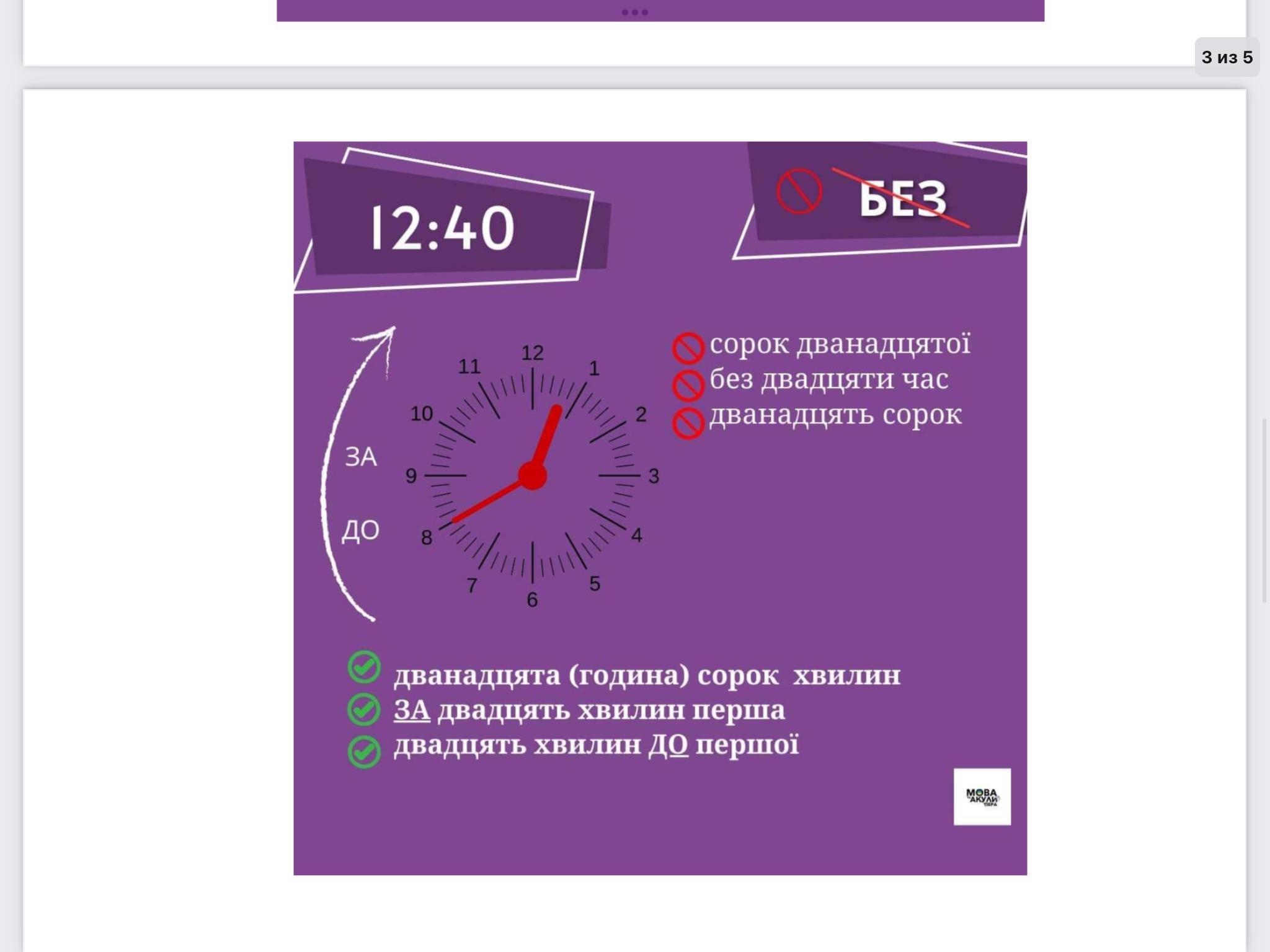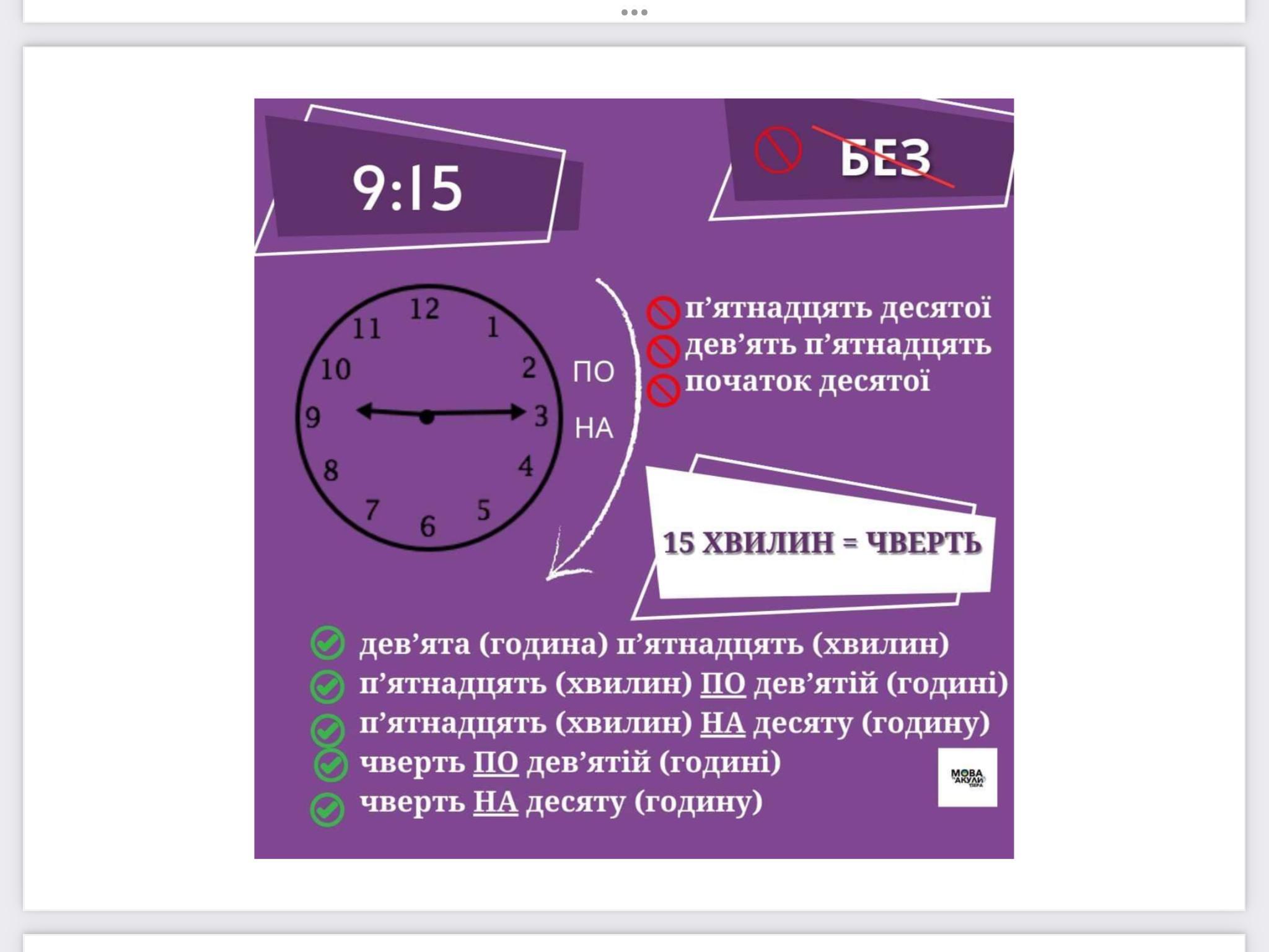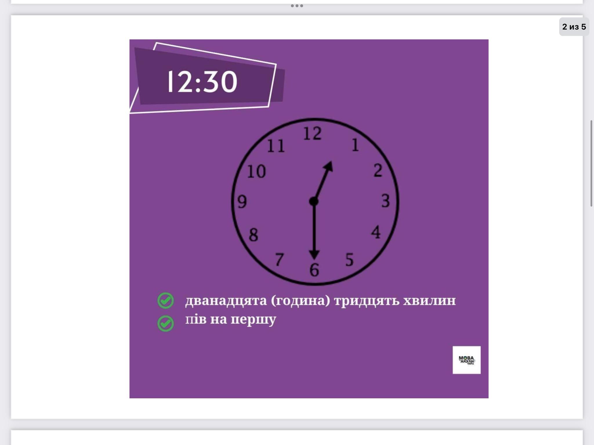 Дайте письмову відповідь на питання «Котра година?» словами, якщо годинник показує