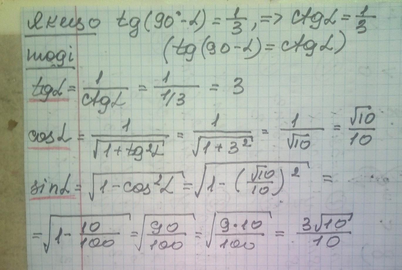 sing, cosa i tga, якщо tg(90°-a)=1/3;