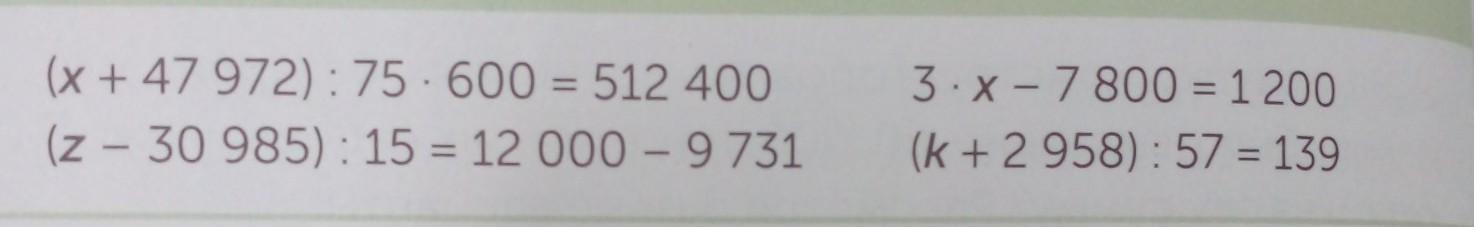 8 Реши уравнения. (x + 47 972): 75× 600 = 512 400 (z - 30 985): 15 = 12 000 - 9731 3.x - 7800 = 1200 (k + 2 958) : 57 = 139пж помогите