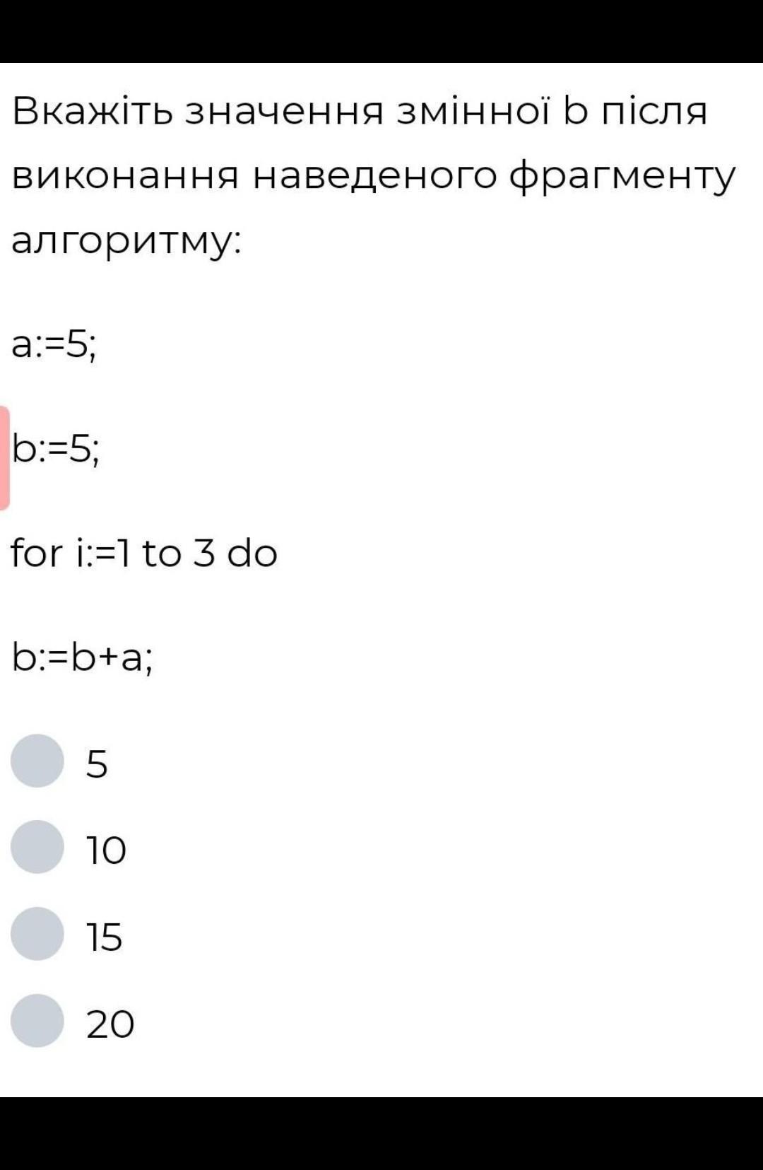 Вкажіть значення змінної b після виконання наведеного фрагменту алгоритму: