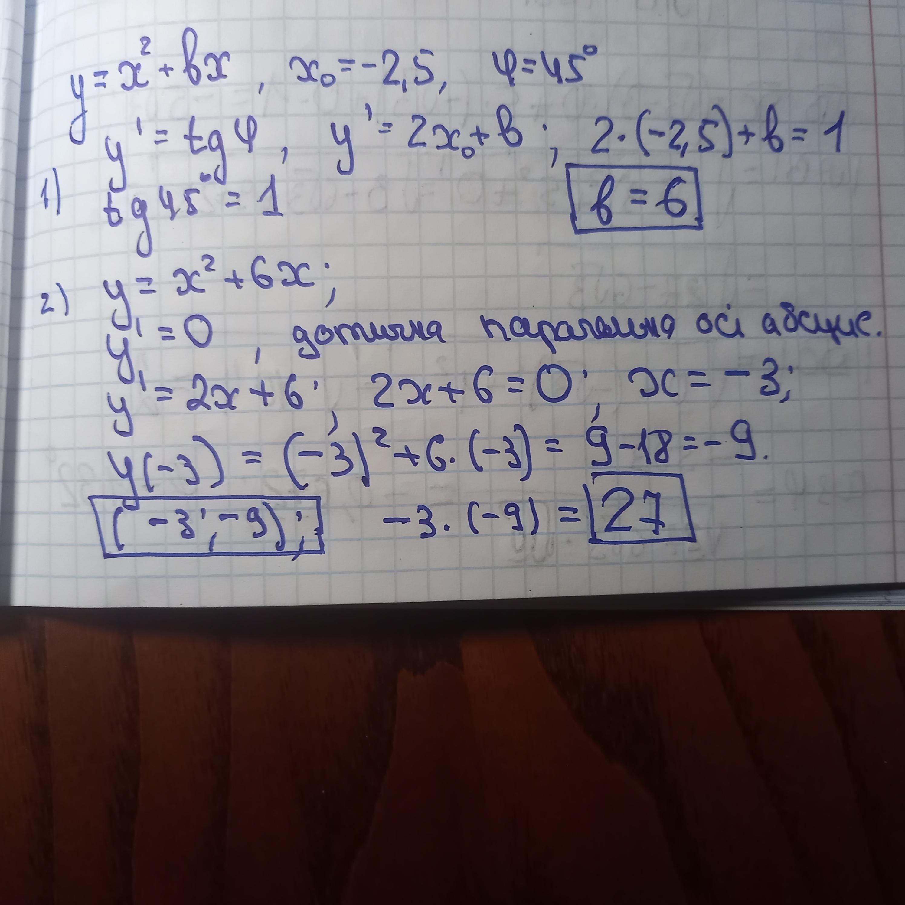 Дотична до графіка функції y=x^2+bx у точці цього графіка з абсцисою x0= -2,5 утворює з додатним напрямом осі абсцис кут 45*.