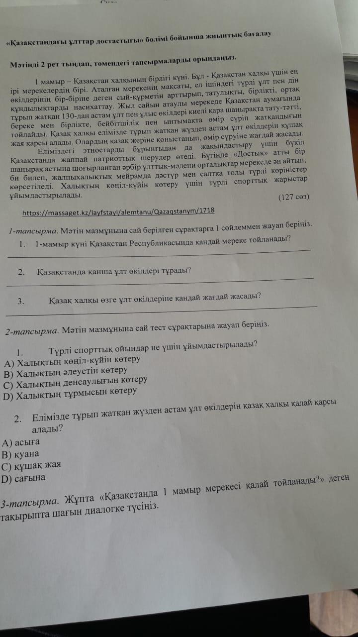 1-тапсырма 1)Қазақ халқының бірлік күні