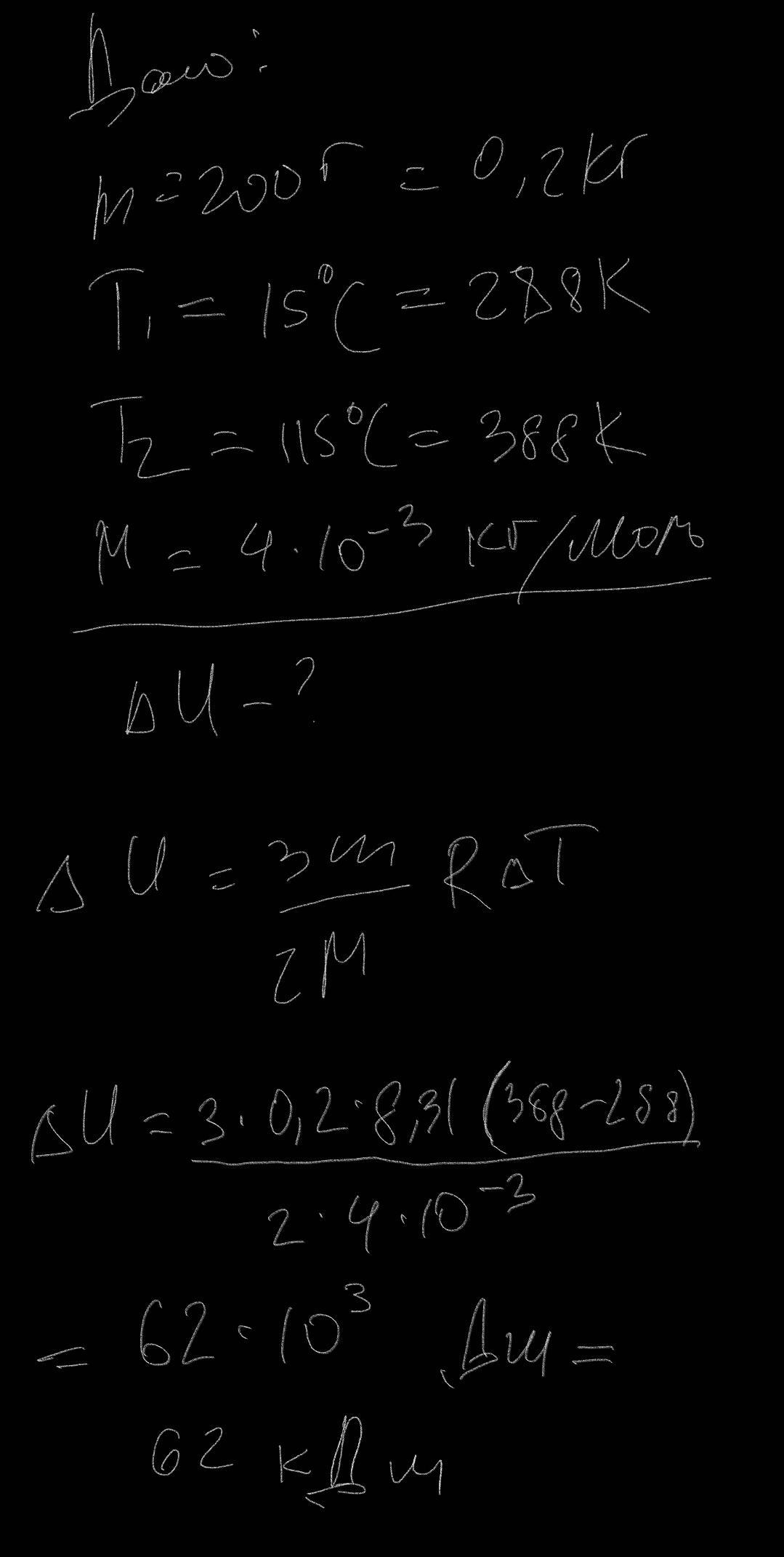 №2 Гелій масою 200 г нагріли від 15 0С до 115 0С. Знайти зміну внутрішньої енергії