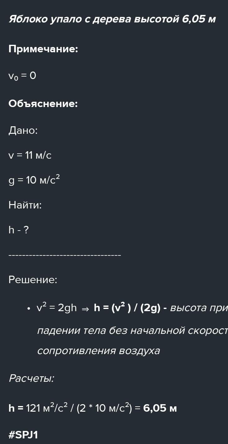 СРОЧНО,ДАЮ 60 БАЛЛОВ!!! яблуко вільно падає з певної висоти вертикально вниз і вдаряється об землю зі швидкістю 11м/с.З якої висоти впало яблуко? До задачі виконати пояснювальний малюнок. (7 КЛАС,ЩОБ БУЛО НЕ ВАЄКО,БАЖАНО ЗА ФОРМУЛОЮ КІНЕТИЧНОЇ ЕНЕРГІЇ!!!)