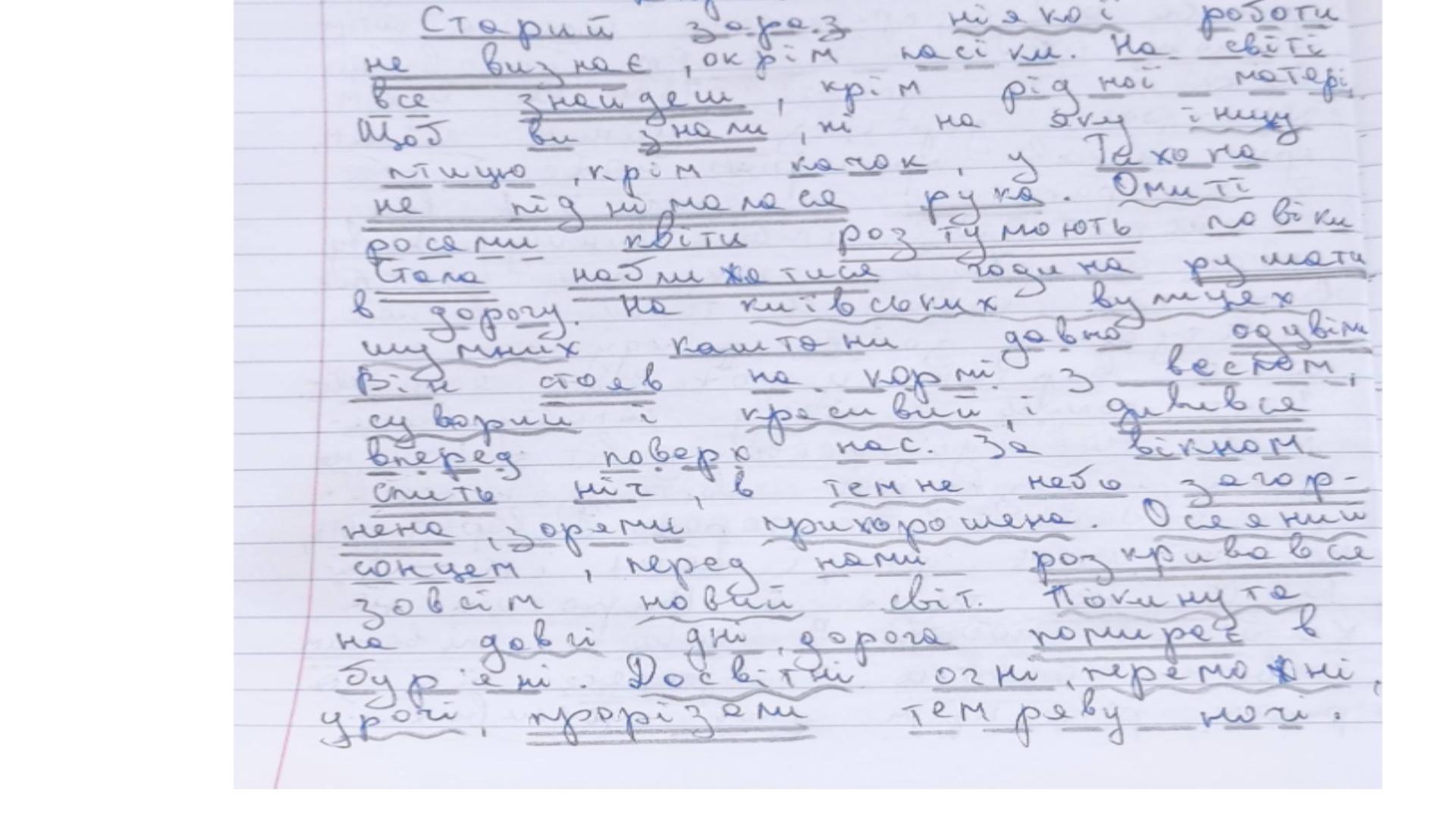 1. Списати, розставити розділові знаки. Підкреслити відокремлені члени речення відповідно до їх синтаксичної ролі. Він стояв на кормі з в(и,е)слом суворий і красивий і дивився (в)перед поверх нас. За вікном спить ніч в темне небо загорн(и,е)на зорями прихорошена. Осяяний сонцем перед нами ро(с,3)кривався зовсім новий світ. Стаючи на обра(н,нн)ий гостинець ми знаємо хто шлях той торував. Усяка пташ(е,и)чка радіючи співала. Я йшов (не) поспішаючи. На кла(т,д)ці обнявшись стояли дві дівчини. Остап стояв вагаючись. (Не)зважаючи на погану погоду біля освітл(е,и)ного під(')їзду театру панувало пожвавлення. Я був молодий і здоровий і міг працювати (не) втомлюючись. Умови жит..я поступово змінювалися і тих н..сприятливими особливо для потомства.