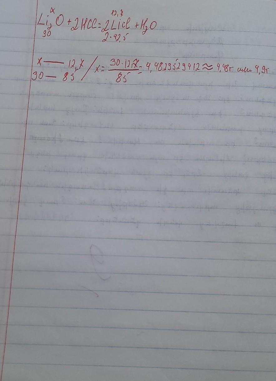 Сначала нужна реакция оксида лития и соляной кислоты.Затем записываем имеющиеся у нас данные.После этого составляем уравнение и задача решена.