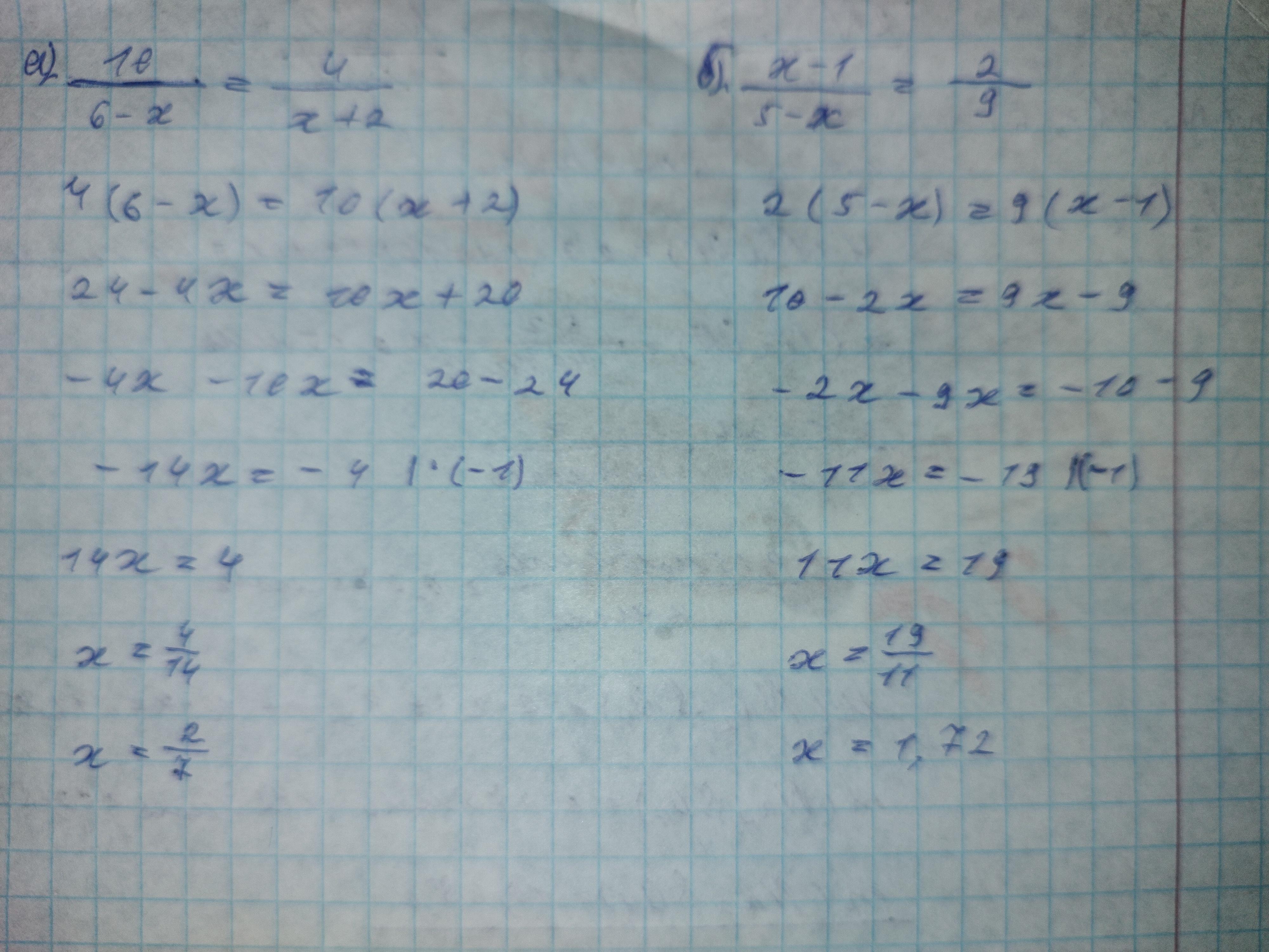 б) ( х - 1) : ( 5 - х) = 2 : 9.