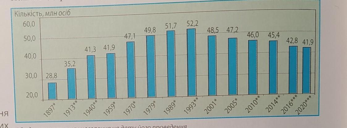 За даними мал.190 на с.238 визначте визначте середню густоту населення в Україні у 1913, 1959, 1993р.р. і порівняйте її із сучасним показником. Як змінювалася густота населення України протягом останнього сторіччя? Середню густоту населення визначають за формулою: Г = Н/П, де Н - кількість населення, П - площа. Площа України - 603,7 тис. км². Помогите!!!! Даю 100 балов!