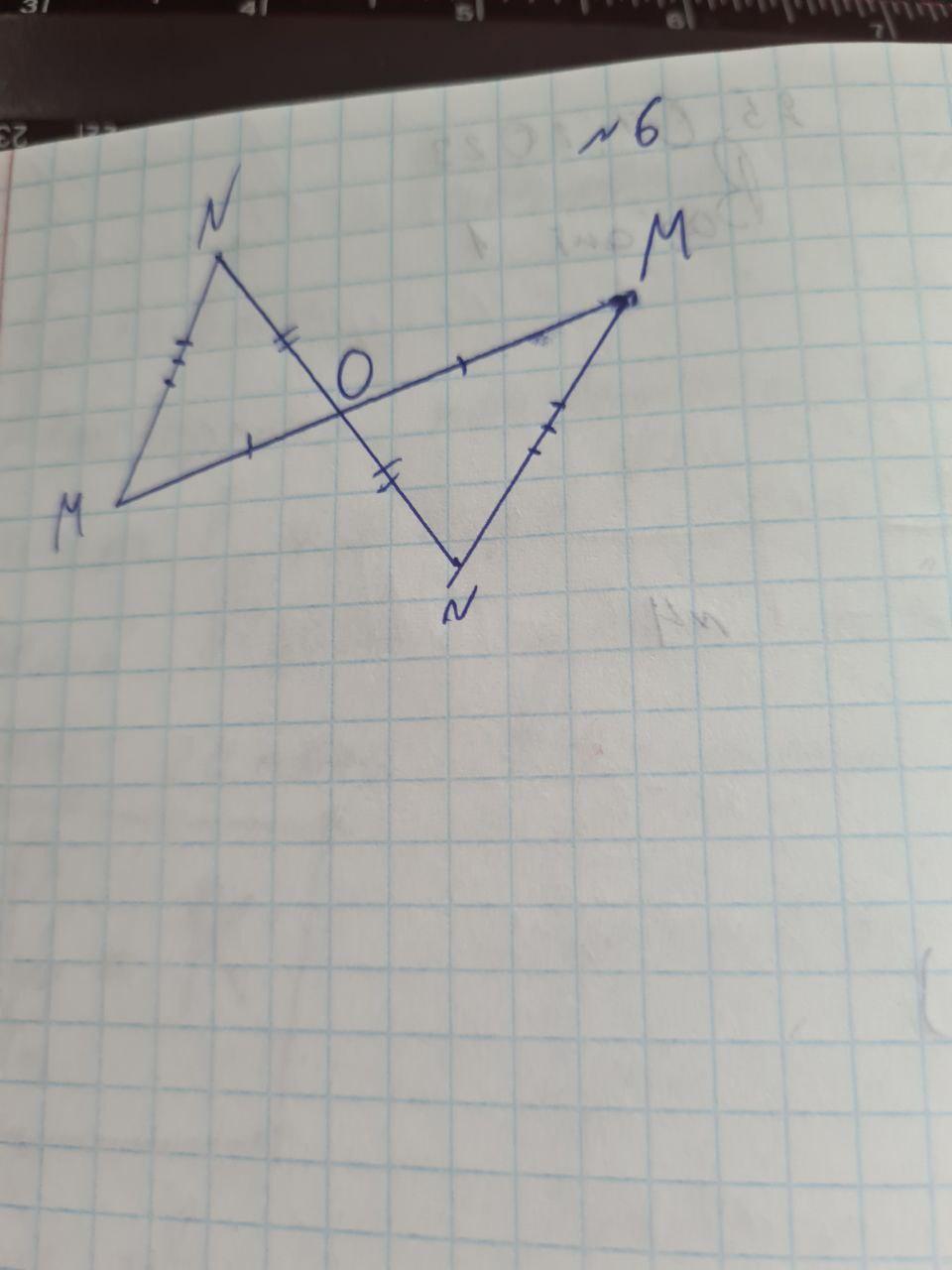 Побудуйте фігуру, симетричну даному трикутнику відносно прямої NO.