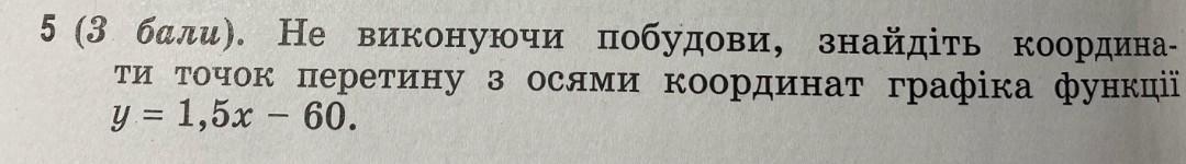 Із віссю Ох : у = 0 ; 1,5x - 60 = 0 ; 1,5х = 60 ; х = 40 ; ( 40 ; 0 ) ;