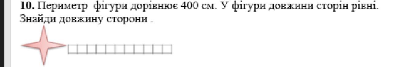 Если сумма длин всех сторон равна 400 см, то длина одной стороны: