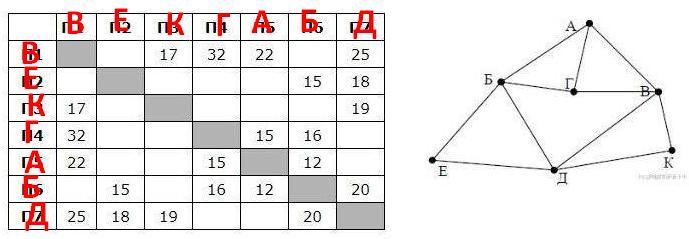 Берем точки с двумя дорогами. E и К. В таблице это П2 и П3, но что их них что мы не знаем, но уже знаем, что Д=П7