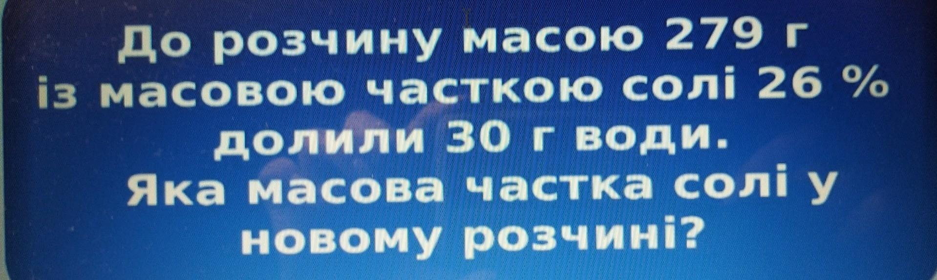 масова частка солі = маса солі у новому розчині / маса нового розчину × 100%