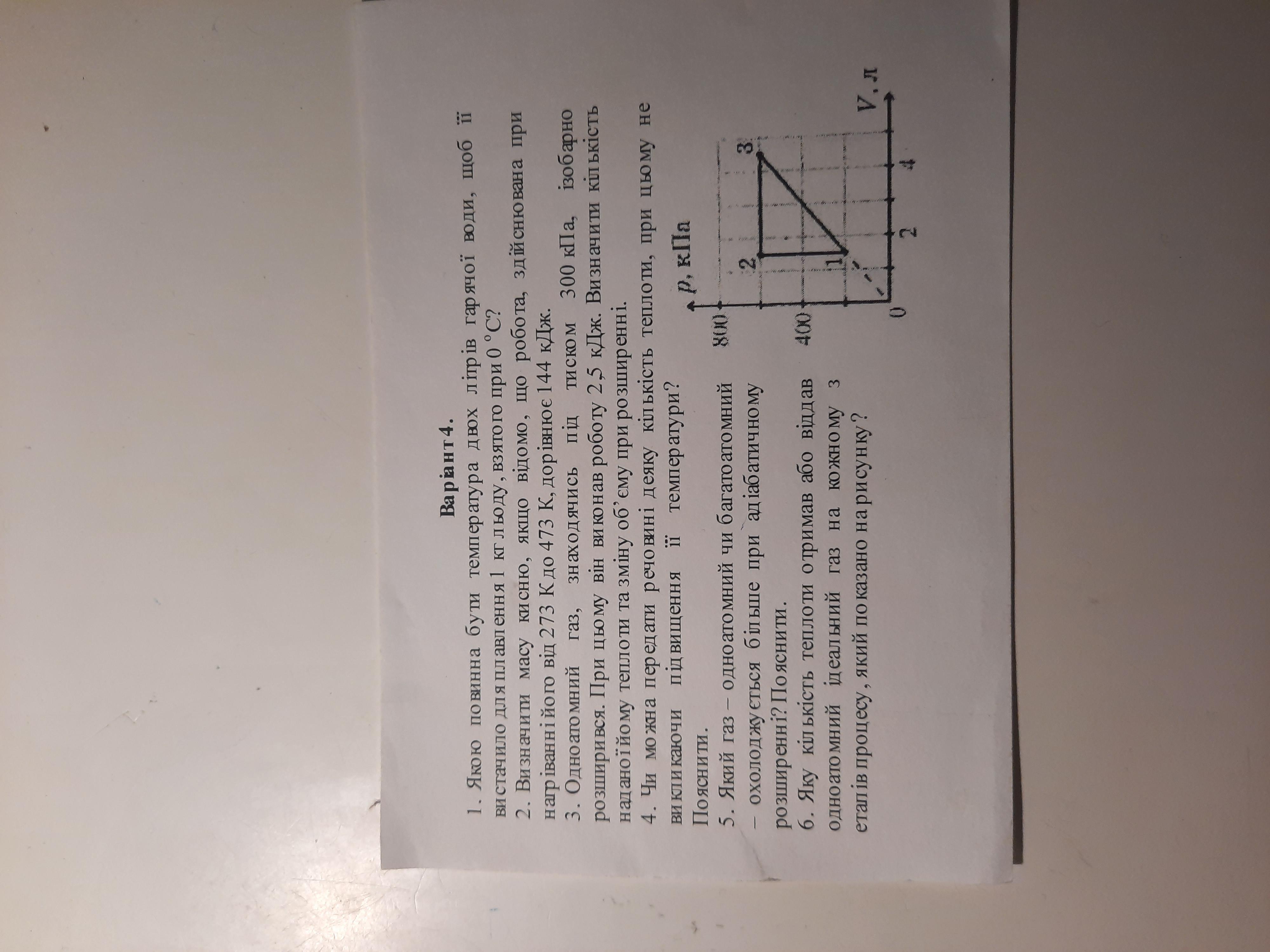 Розглядаємо горизонтальну ділянку графіка. Згідно першого закону термодинаміки кількість теплоти, яку отримав газ. Зміна внутрішньої енергії газу. Відповідно до рівняння Менделеева-Клапейрона зміна внутрішньої енергії газу. Робота, виконана газом. Тоді отримана газом кількість теплоти; (Дж).
