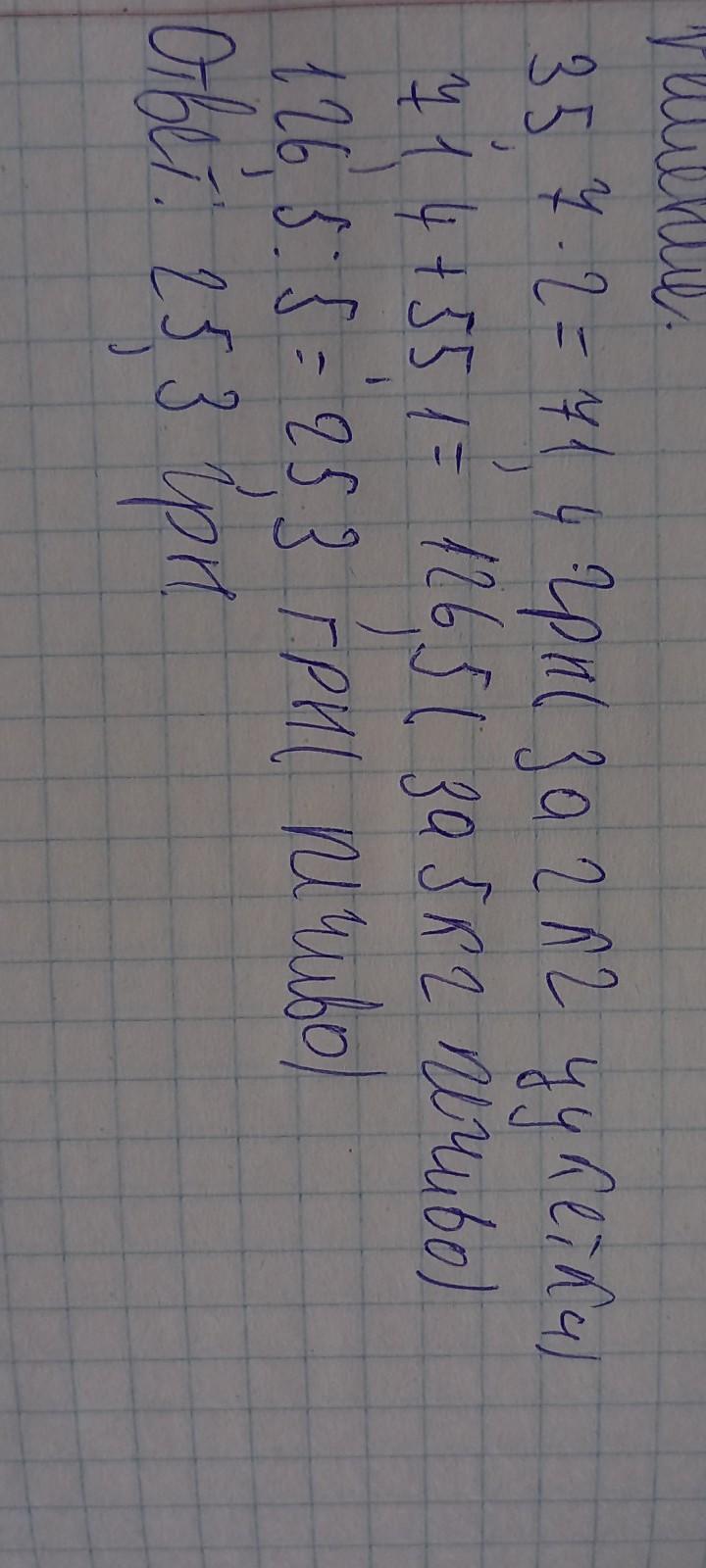 Купили 2кг цукеток по 35,7 грн за 1кг і 5 кг печива. За печиво заплатили на 55,1 грн більше, ніж за цукерки. Скільки коштує 1кг печива?
