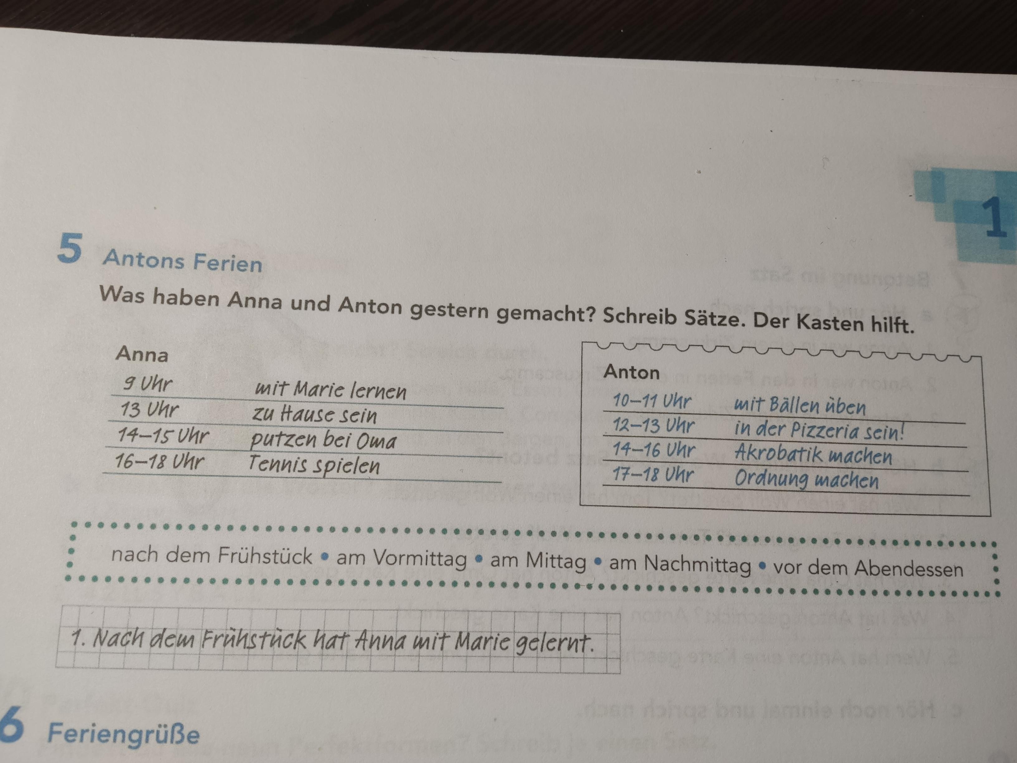1. Nach dem Frühstück hat Anna mit Marie gelernt.