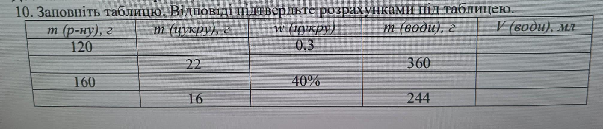 10. Заповніть таблицю. Відповіді підтвердьте розрахунками під таблицею.
