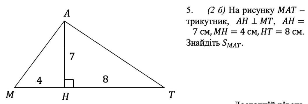 На рисунку MAT трикутник, АН 1 МТ, АН = 7 см, МН = 4 см, НТ = 8 см. Знайдіть SMA