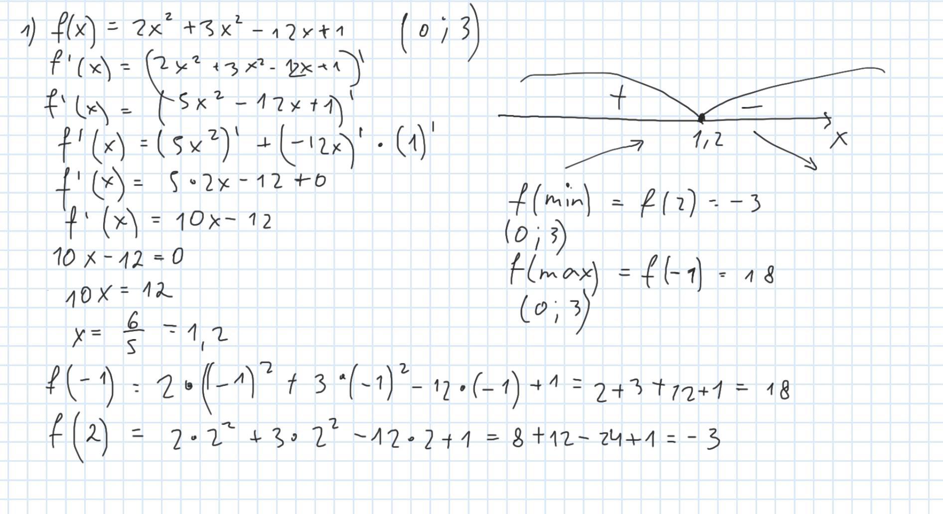 1)f(x)=2x²+3x²-12x+1 (0;3)