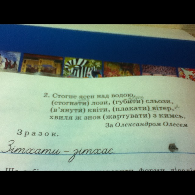 Стогнуть лози;гублять сльози; В’януть квіти;плаче вітер; Жартує з кимсь.