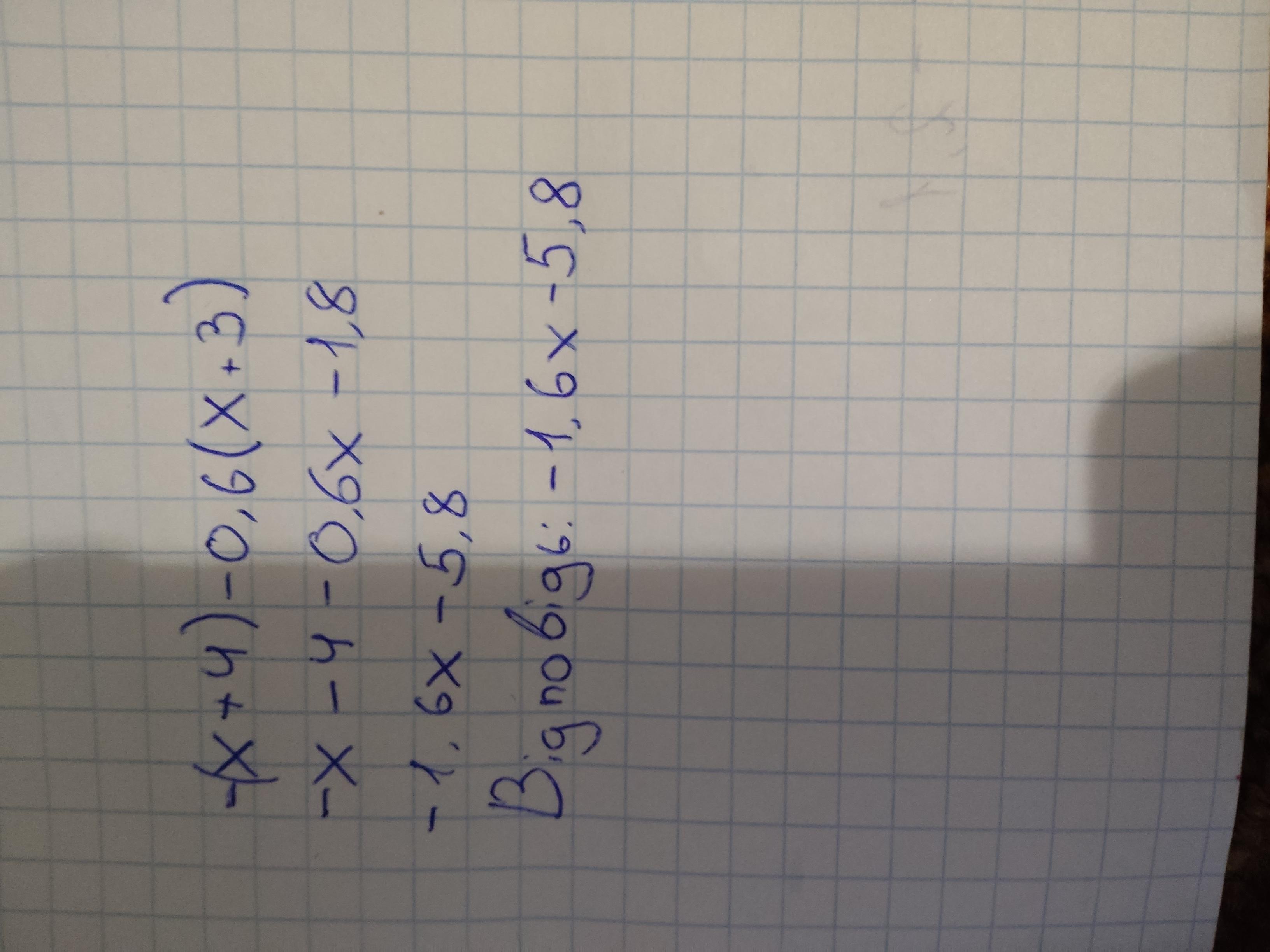 -(x+4)-0,6(x+3) = - х - 4 - 0,6х - 1,8 = - 1,6х - 5,8