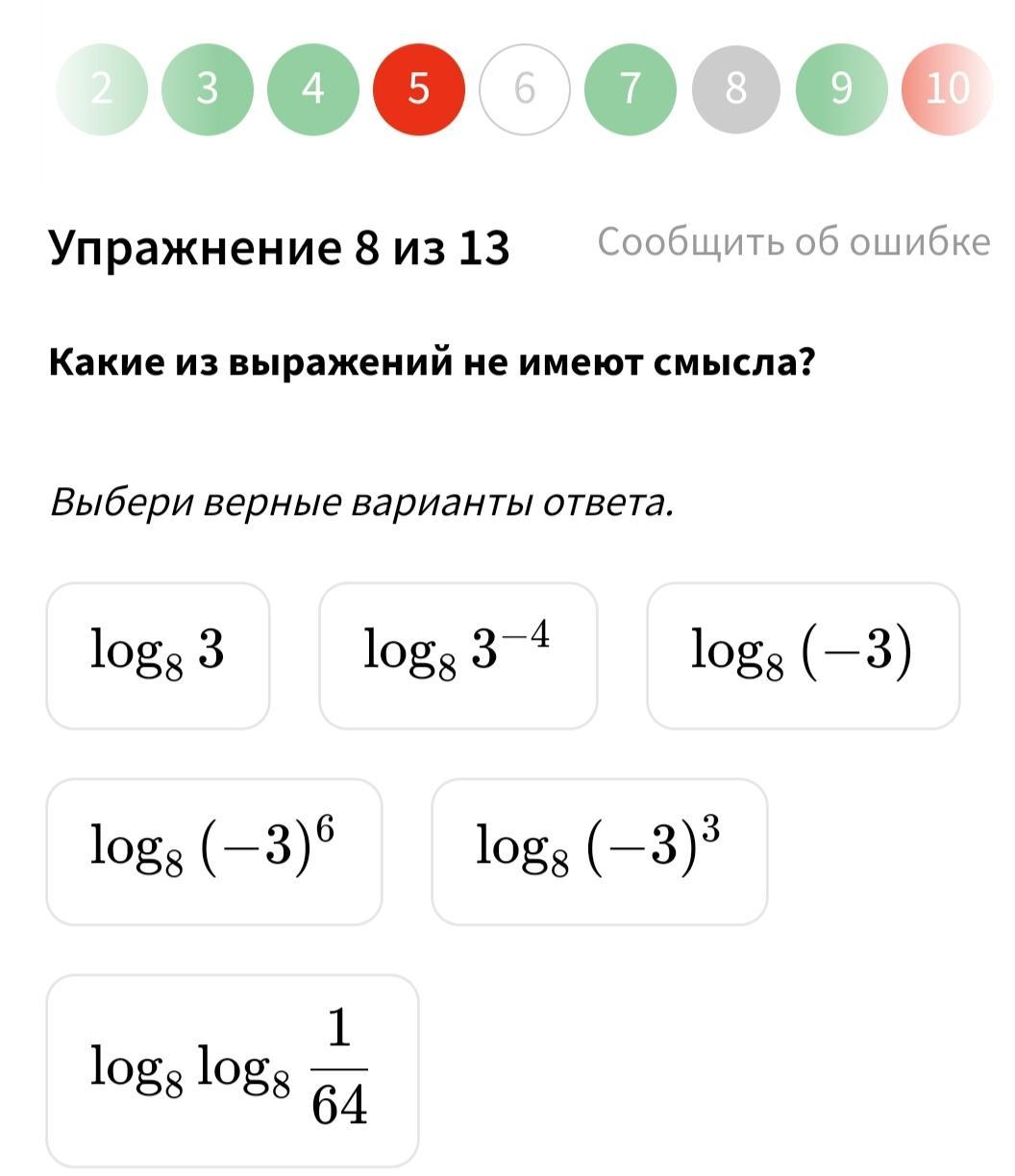 3. Не имеют смысла по определению понятия логарифмы те выражения, у которых под знаком логарифма стоят отрицательные числа, т.е. не имеют смысла третье выражение - логарифм при основании 8 отрицательного числа (-3 ), а также не имеет смысла пятое выражение -логарифм при основании 8 числа минус три в третьей степени, которое при возведении в третью степень дает отрицательное число минус 27.