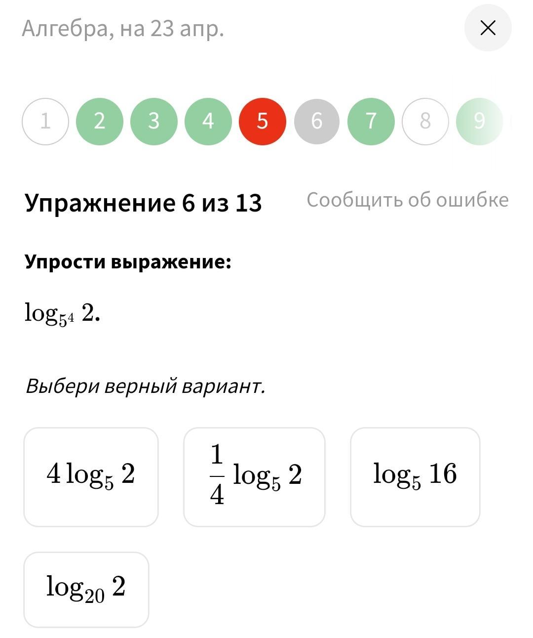 1. Логарифм при основании числа 5 в степени 4 согласно формуле №7 будет равен 1/4 логарифма при основании 5 числа 3, т.е. второй ответ из четырех данных.