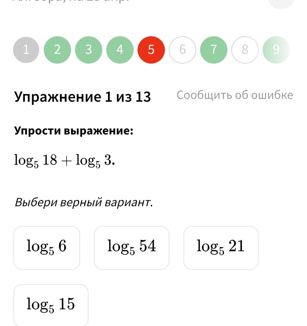 2. сумма логарифмов при основании 5 на основании формулы №4 равна логарифму произведения подлогарифмических чисел, т.е ответ второй (логарифм при основании 5 числа 54).
