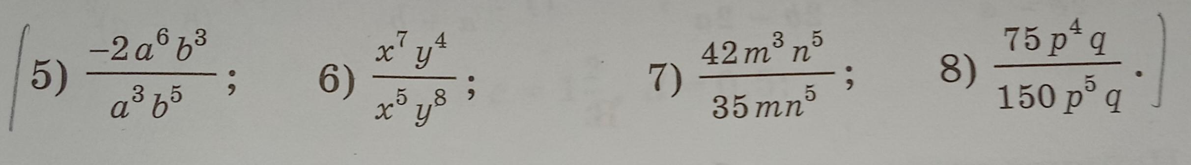 6) х^7 у^4 делить на х^5 у^8= сократим на х^5у^4