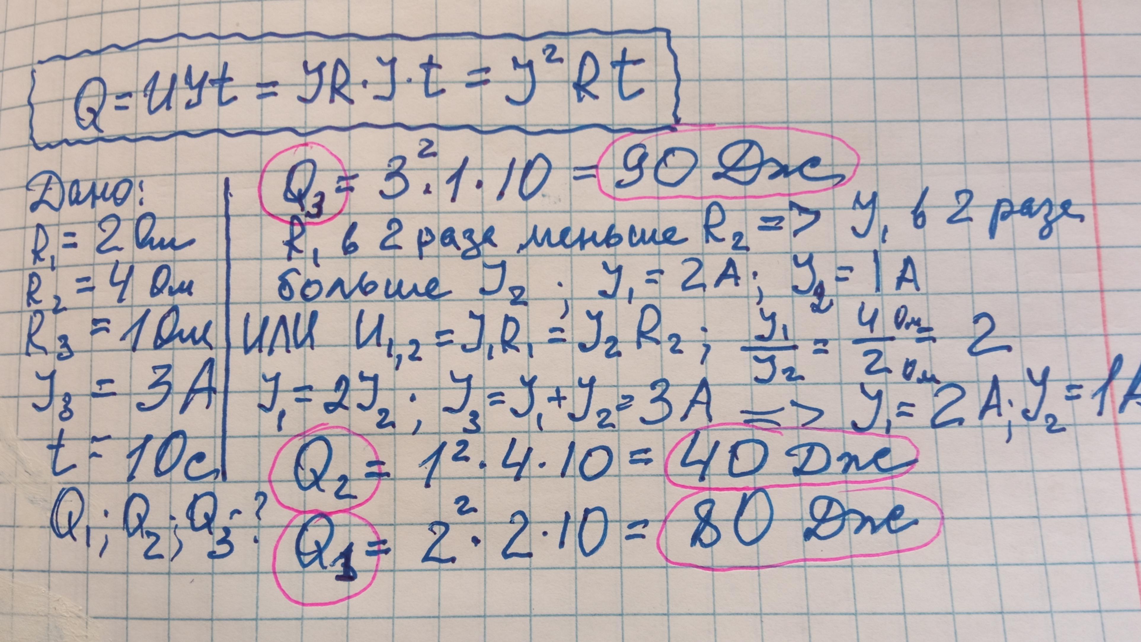 Q₃ = I₃² * R₃* t = 3²*1*10 = 90 Дж - це відповідь